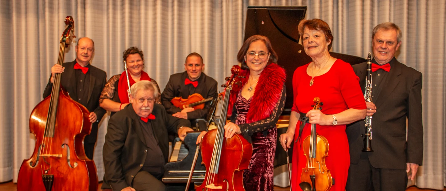 Wer kennt sie nicht, die Schlager und Filmmelodien aus dem frühen 20. Jahrhundert? Das Salonensemble Dolce Vita hat sich seit vielen Jahren dieser Musik verschrieben. In maßgeschneiderten Arrangements und aufgepeppt durch jazzige Akkorde wird sie wieder quicklebendig und verspricht das Publikum in beste Frühlingslaune zu versetzen. Es musizieren Christoph Bencic und Irmgard Steininger (Violinen), Martina Riedl (Flöte), Peter Wiser (Klarinette), Franz Reel (Klavier), Hedwig Hanus (Cello, Gesang), Michael Stacheter (Kontrabass) und Stefanie Bencic (Gesang).